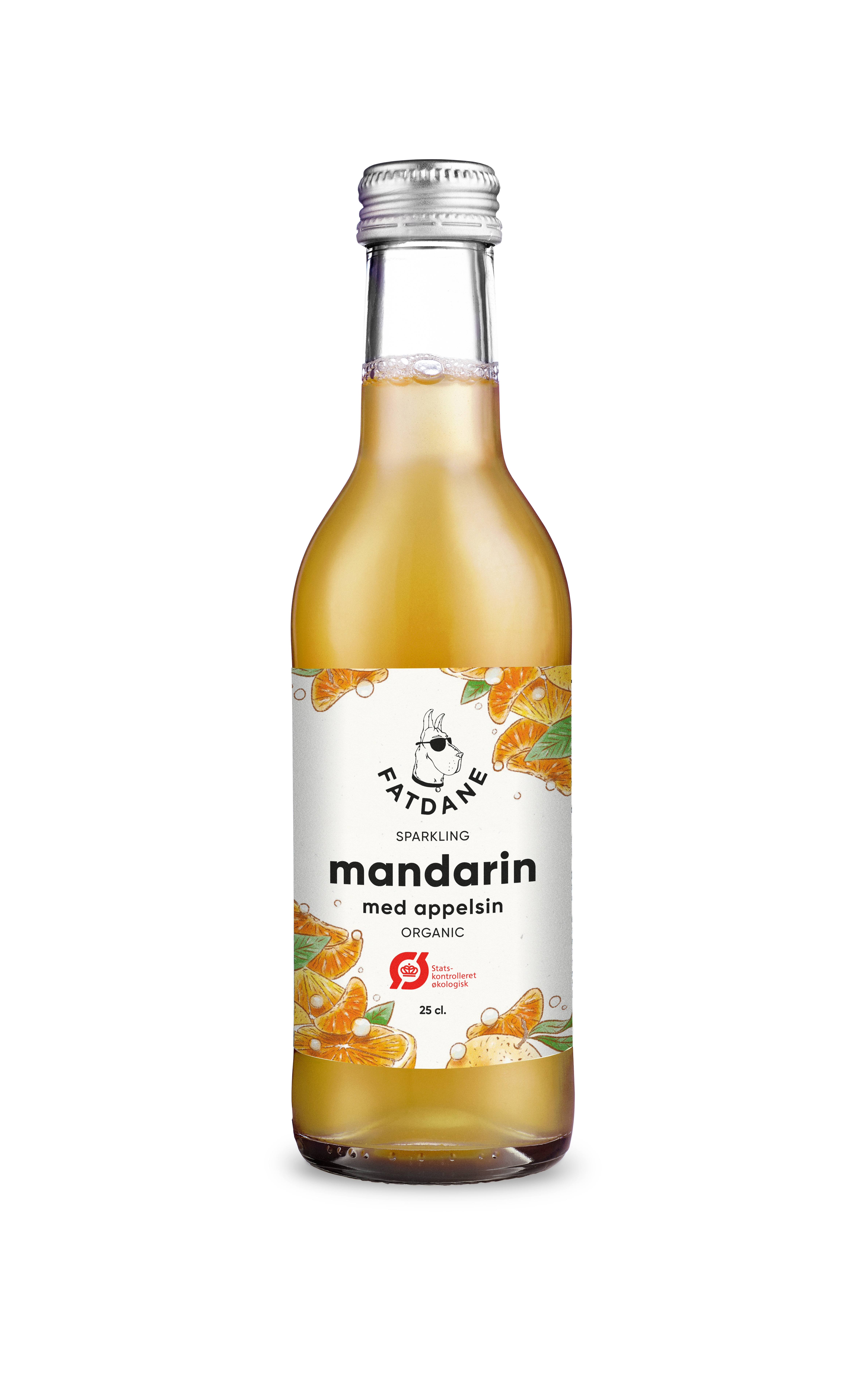 Fatdane Mandarin med appelsin er den sodavand, som du har ventet på! Solmodne, økologiske mandariner og appelsiner er den perfekte kombination, der både er læskende og fuld af smag. Du får den helt rette balance mellem sødme og syrlig citrusfrugt, der sammen med den perlende kulsyre er en klar vinder.